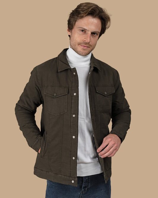 Olive Gabardine Quilted Jacket