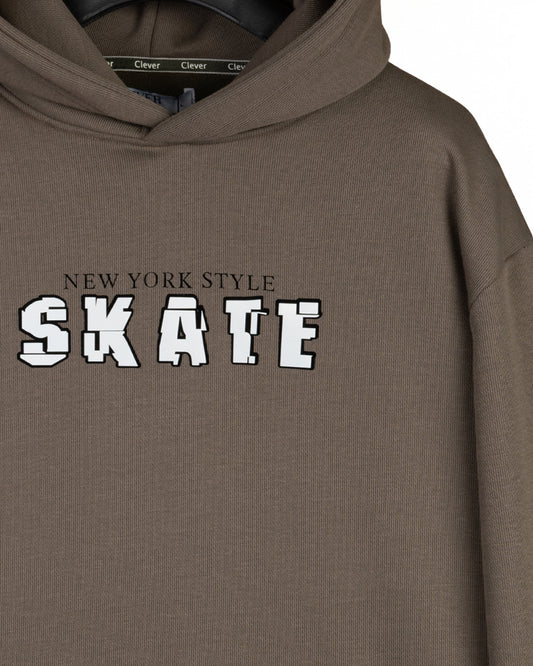 Brown Acid Wash With Defined Seam Lines Cotton Hoodie