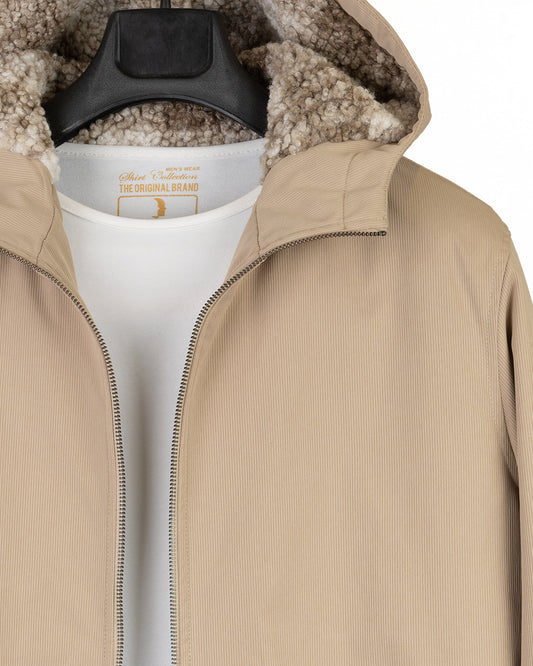 Beige Acid Wash With Defined Seam Lines Cotton Hoodie