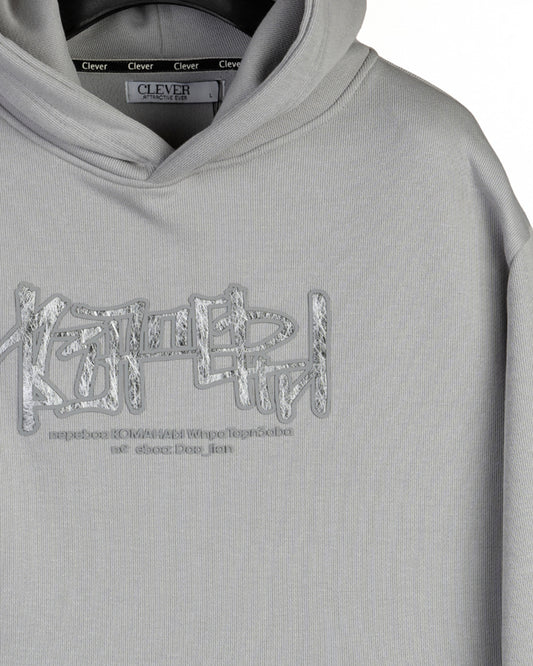 Grey Printed Cotton Hoodie