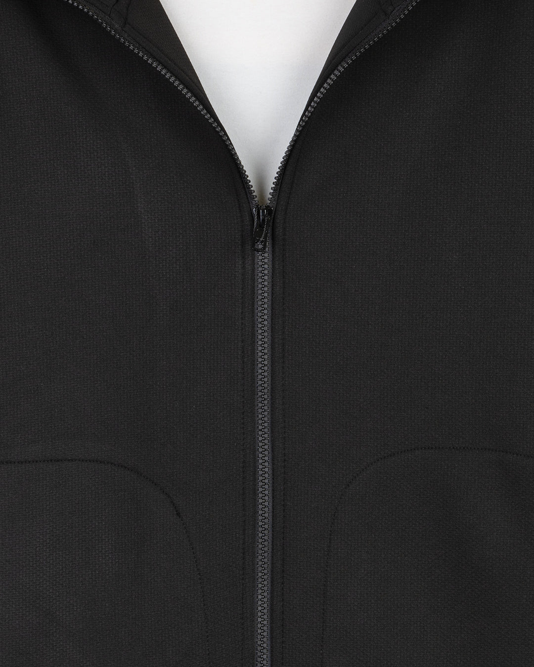 Black Modern Full-Zipper Plain Cotton Hoodie