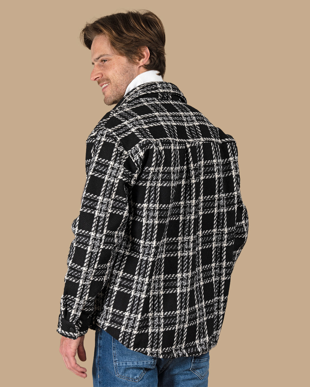 This black gabardine checkered winter shirt is crafted from dense, durable fabric designed to provide warmth and withstand cold conditions. The checkered pattern adds a subtle texture, enhancing its refined and versatile look. Tailored for an expert fit, this shirt balances comfort and style, making it an excellent choice for both formal and casual winter wardrobes. Its durable construction ensures lasting wear through the season.