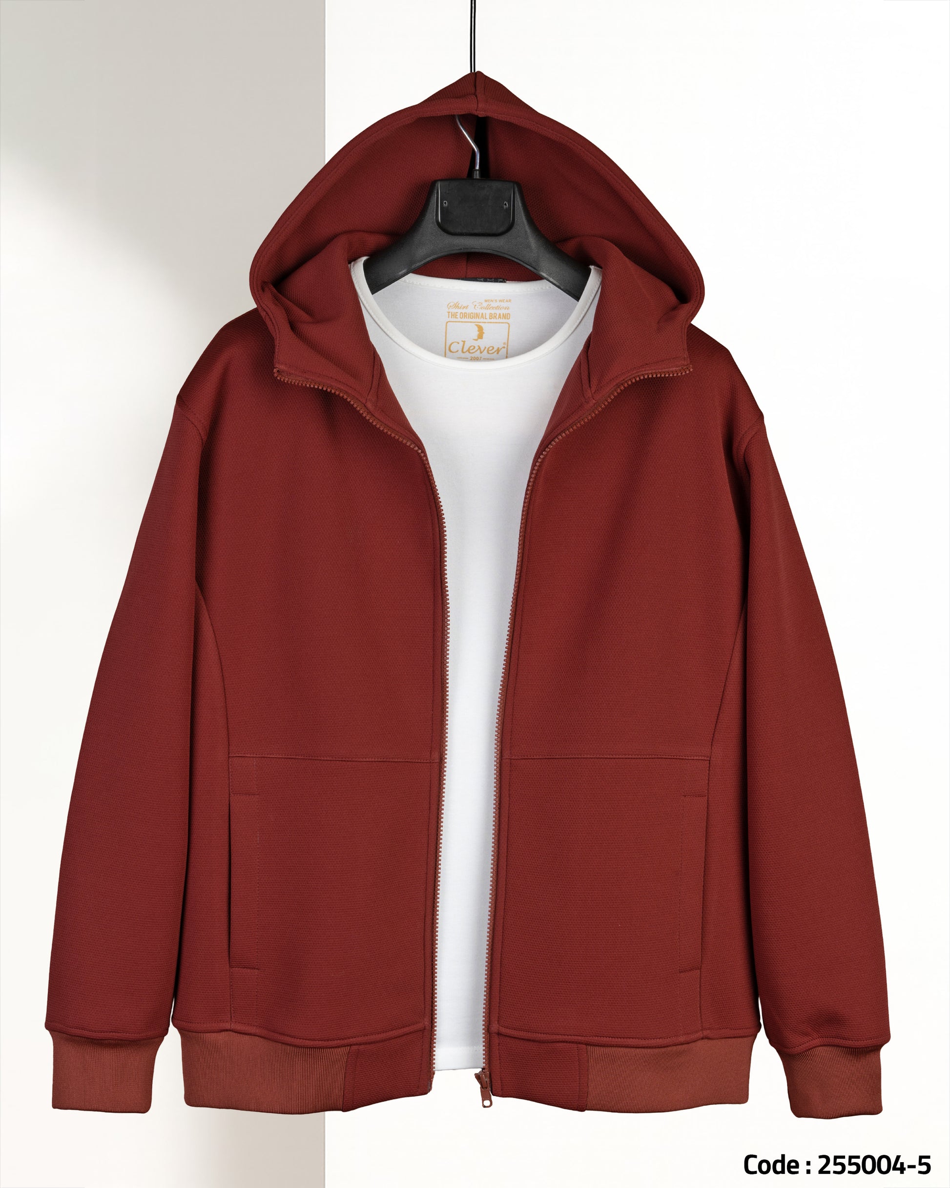 Burgundy Full-Zipper Plain Cotton Hoodie