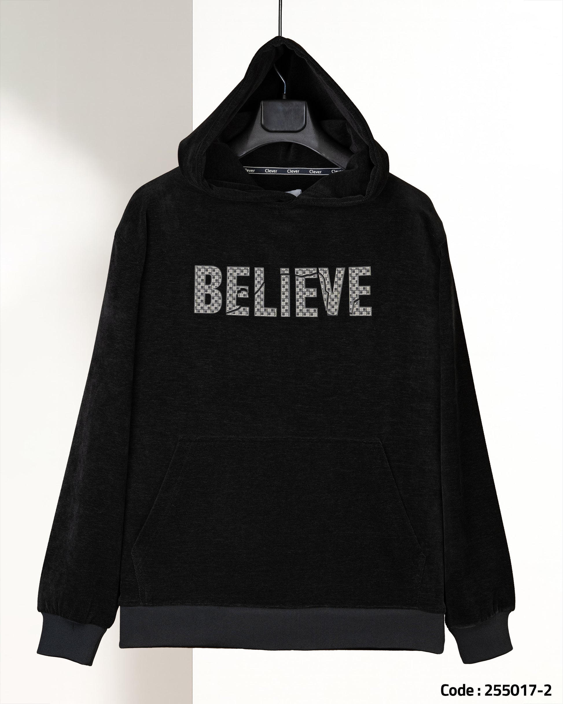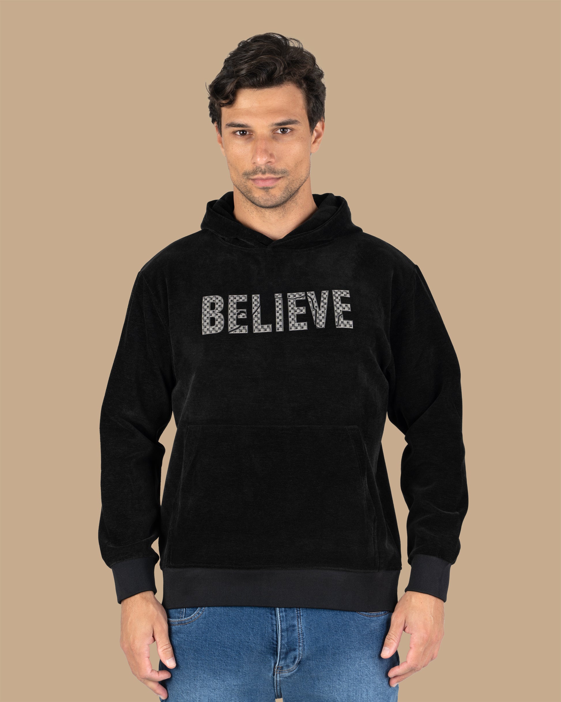 Black Printed Velvet Hoodie