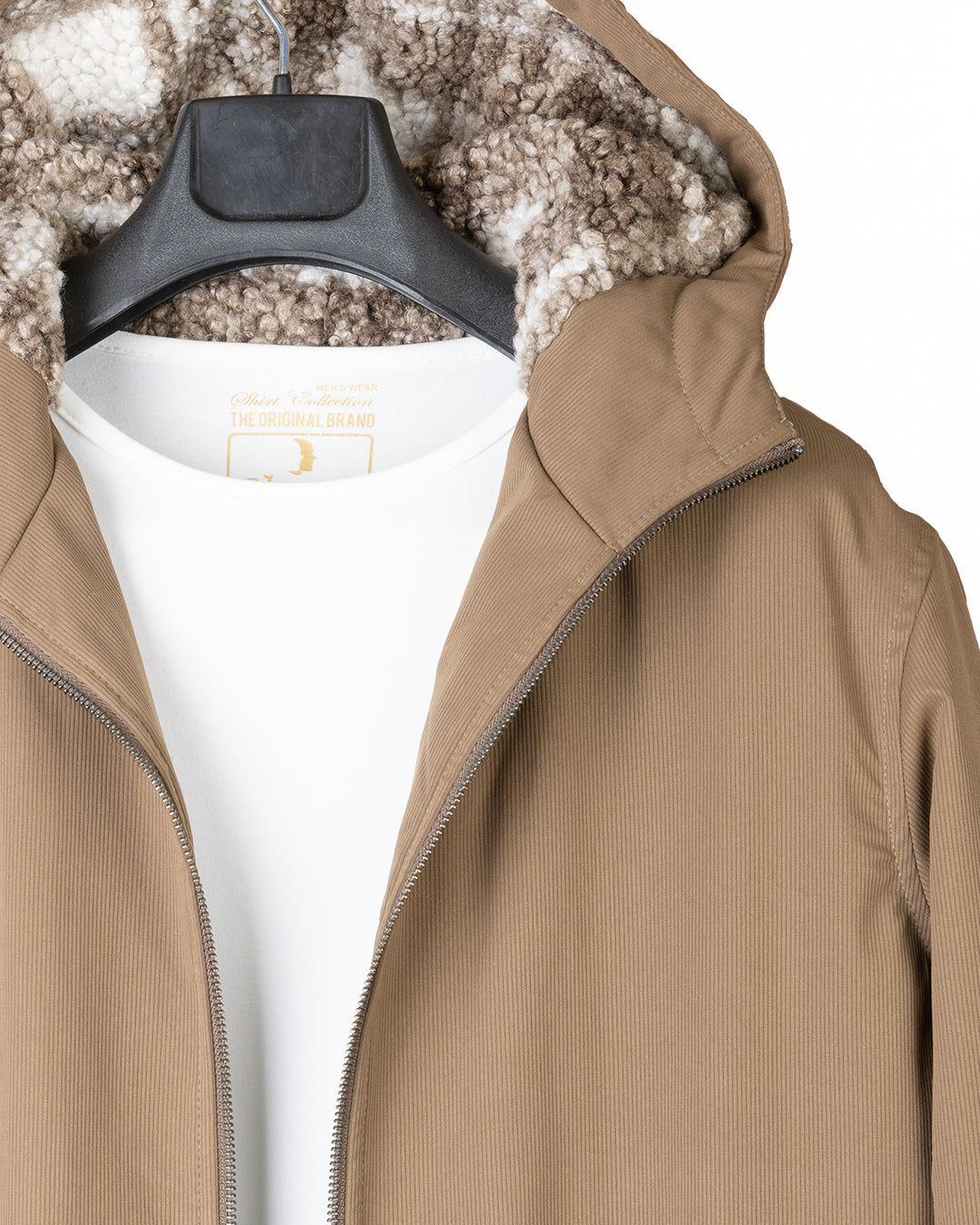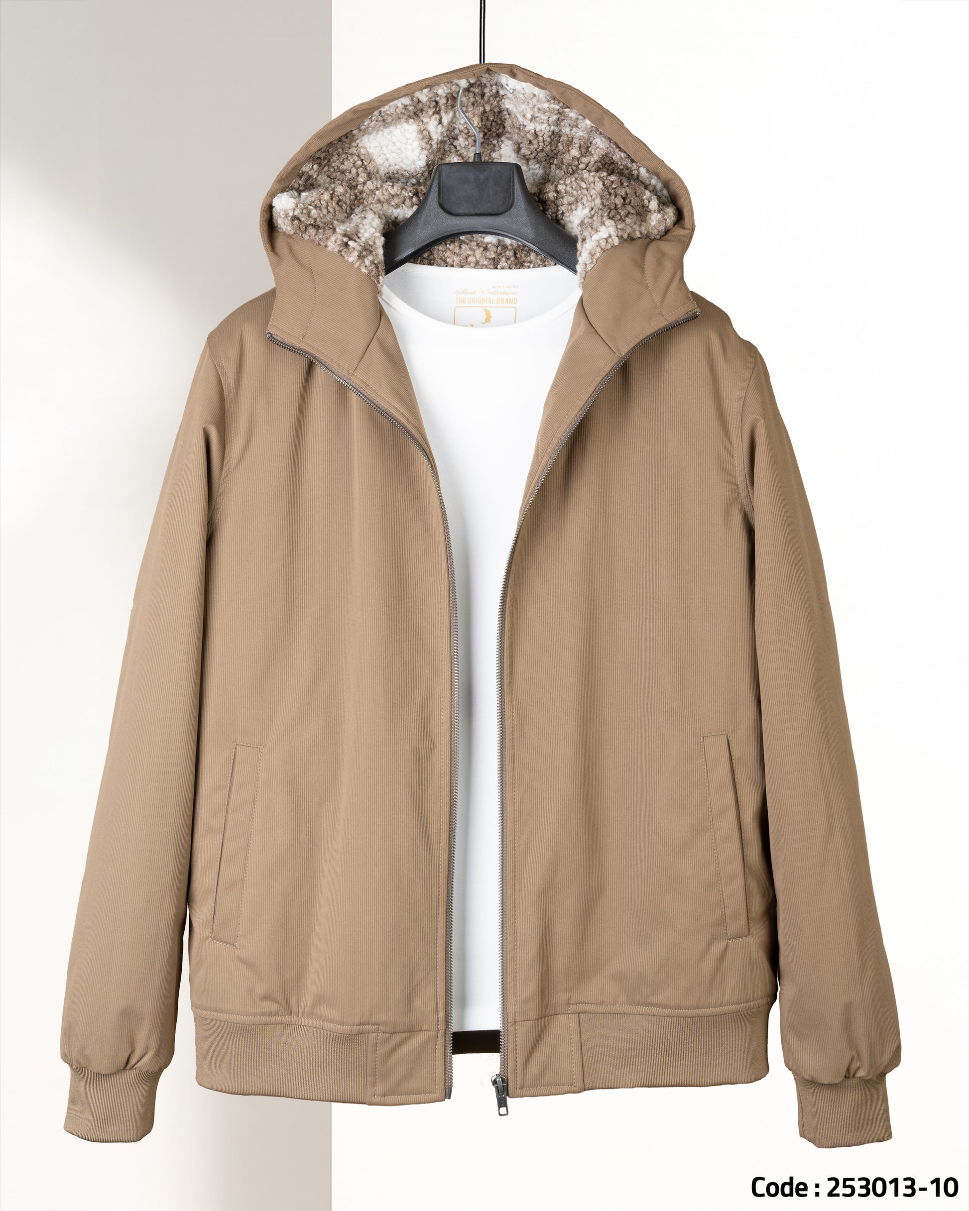 Light-Brown Gabardine Winter Jacket with Fur...