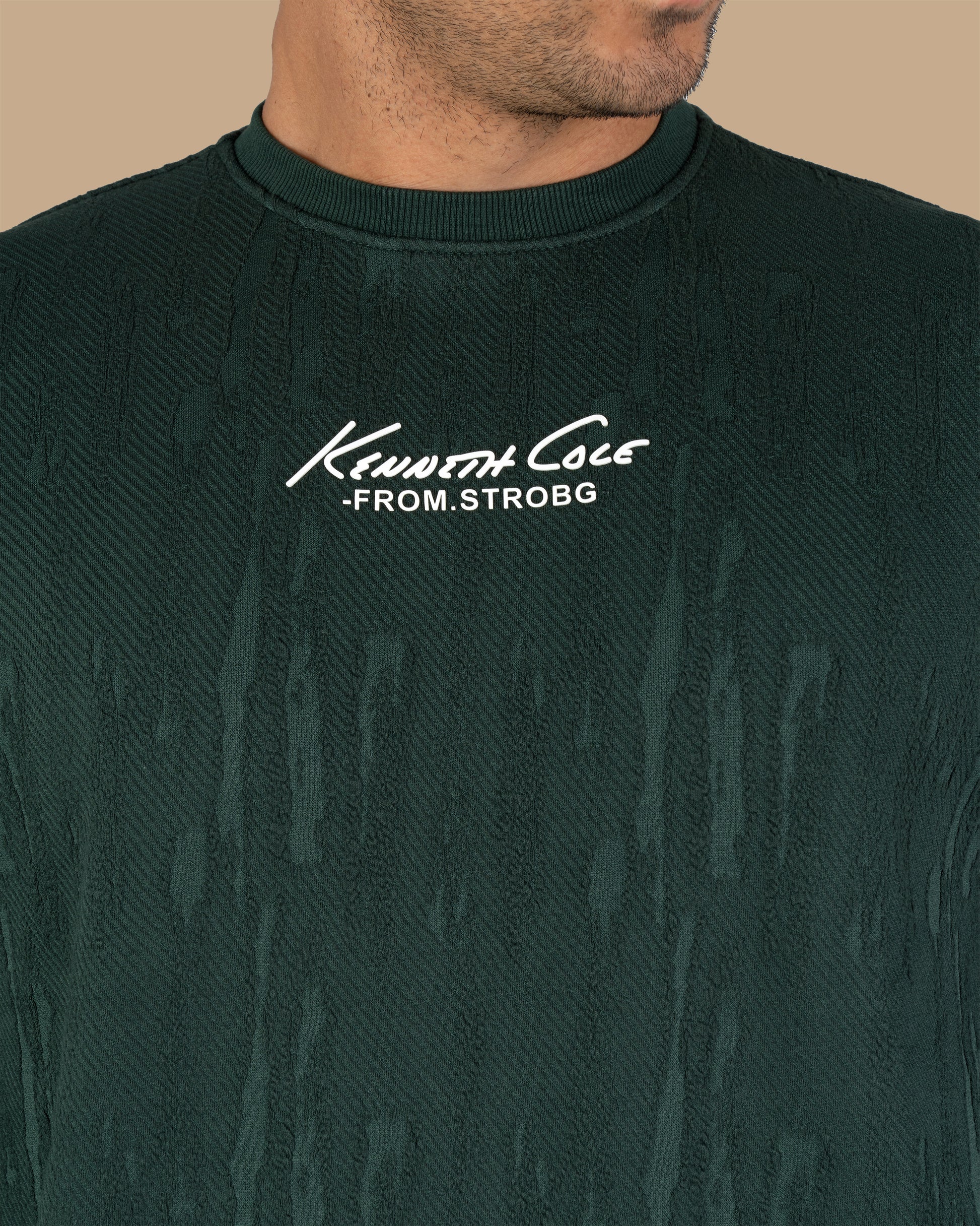 Green Round-Neck Printed Cotton Hoodie