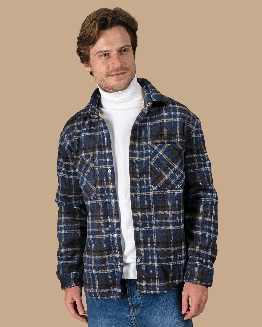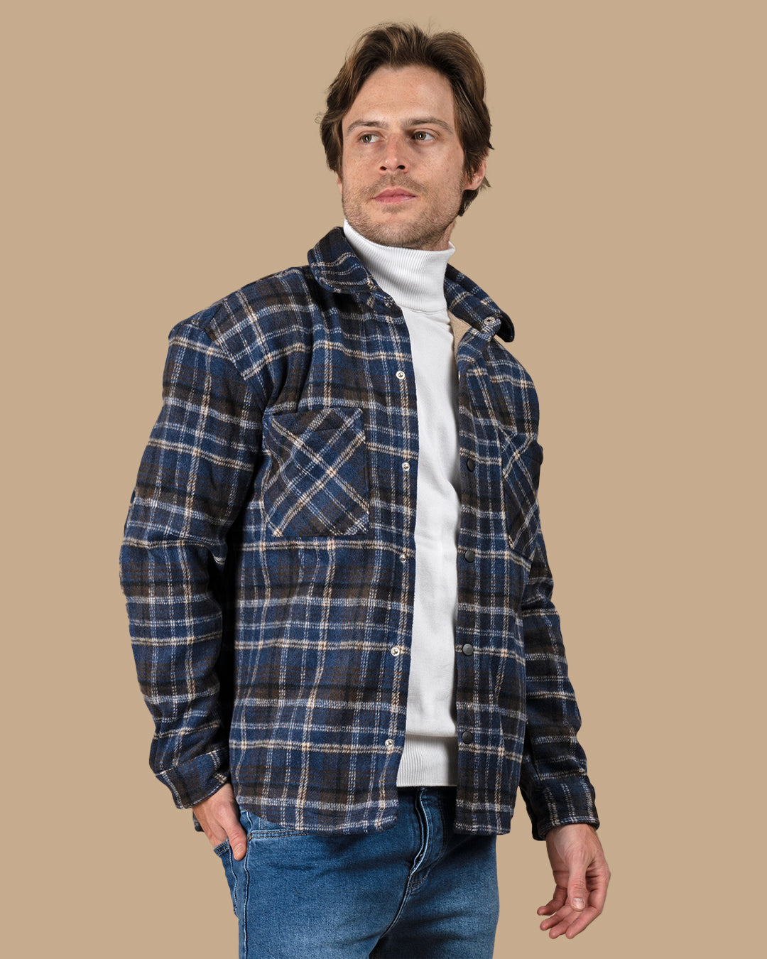 Medium Blue Flannel checkered winter shirt