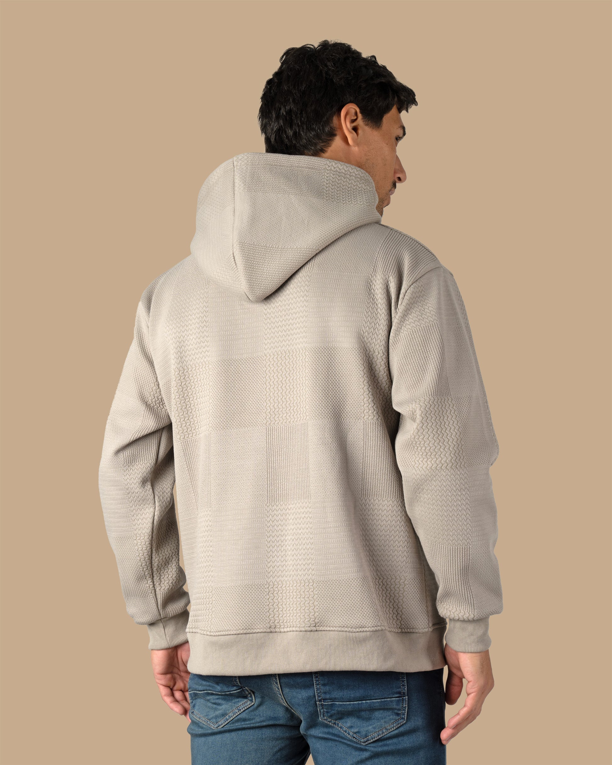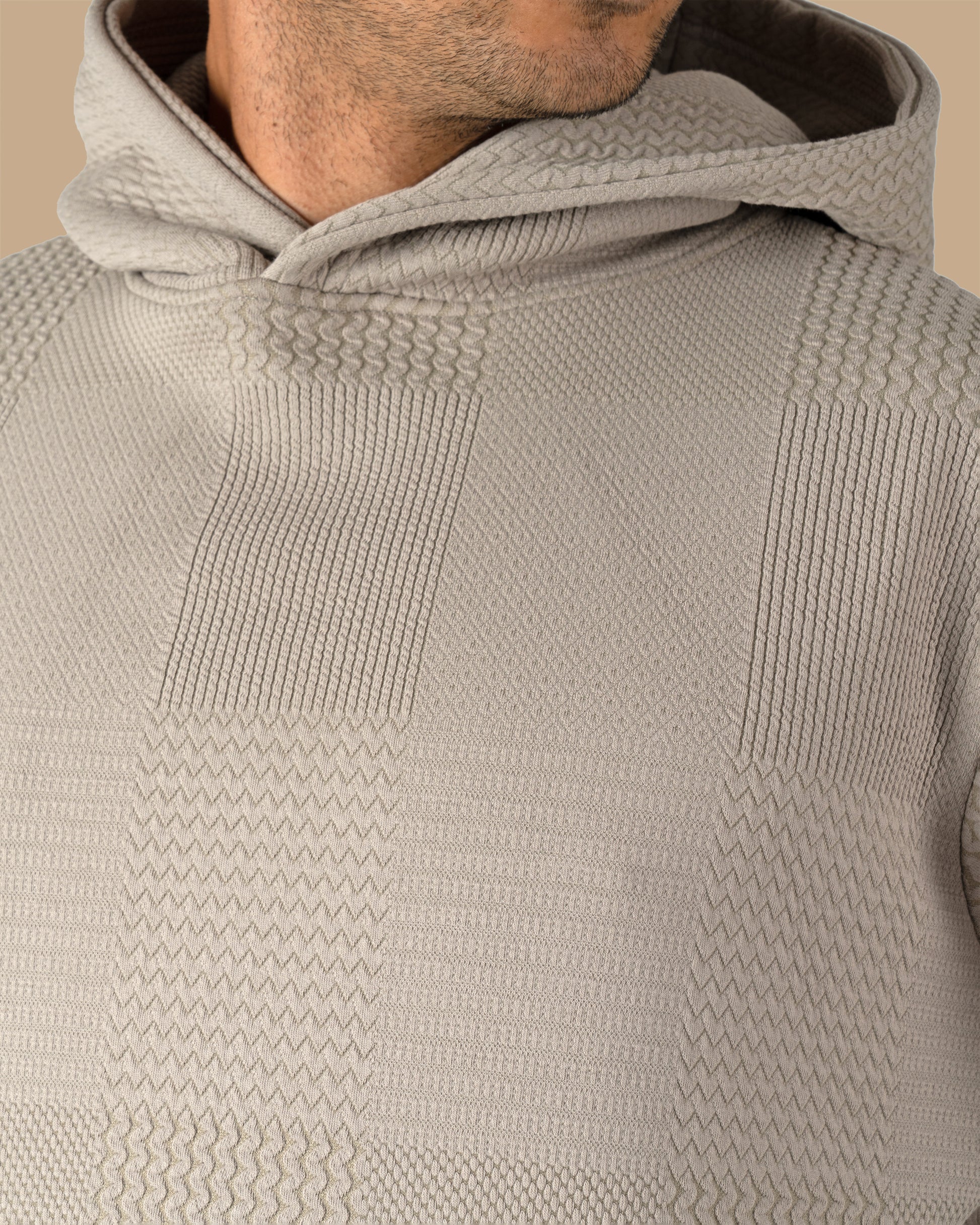 Grey Patterned Knit cotton Hoodie