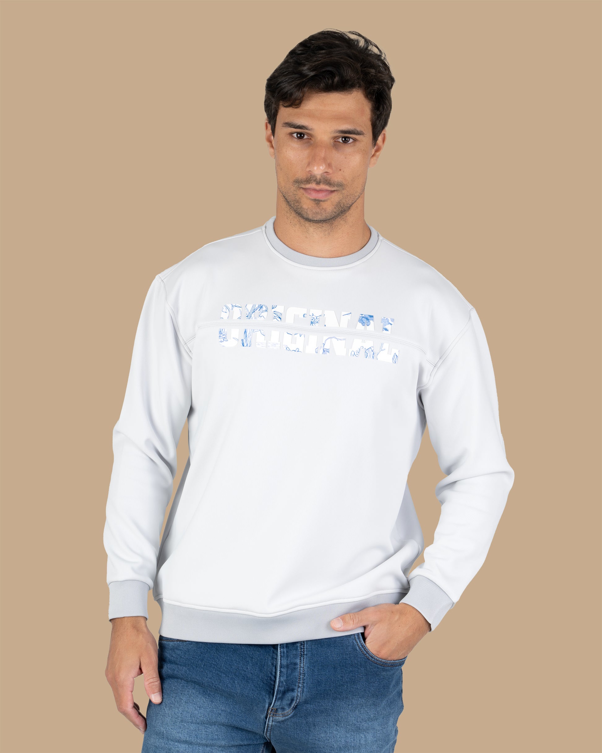 Silver Round-Neck Printed Cotton Hoodie